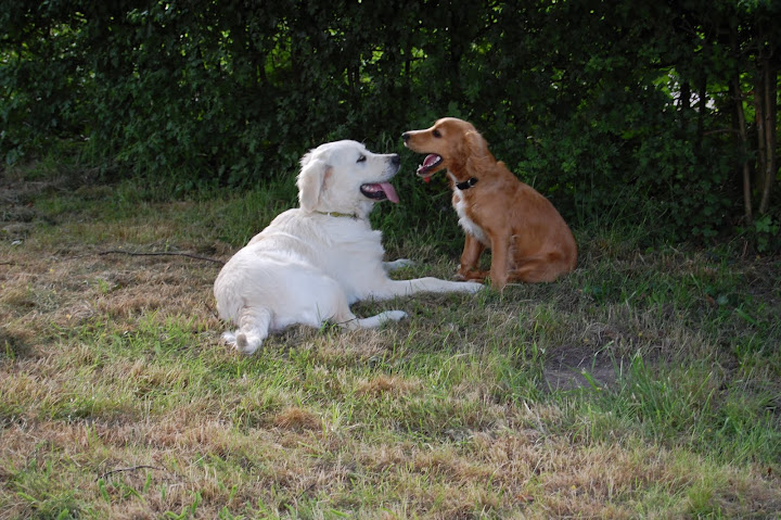 Max heeft ook een beste vriend Boyke (Cavalier King Charles Spaniel en hij is ook even oud als Max, dus 10 maanden oud) om mee te ravotten. Ze gaan elke avond rond zeven uur op het veld spelen. Ze kunnen elkaar niet missen. Max staat te blaffen als de klok van 19.00 uur rond. Ze doen echt veel samen, op het veld of samen zwemmen. Prachtig om te zien. Ik geniet er echt heel veel van.