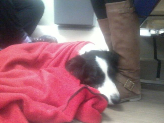 uitgeput en koud heerlijk slapen onder een fleecedeken op mijn baas haar voet!