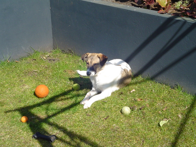En als ik hem zo zie liggen, lijkt hij wel een beetje hetzelfde ''postuur'' te hebben als mijn hondje, en die lange pootjes, hihi