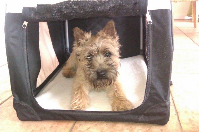Ik ga hem van de week overdag er een keer in laten slapen, dat ik er bij ben. Hij gaat er nu al zo af en toe in liggen