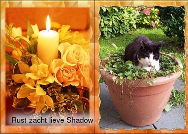 Lieve Shadow, ik zal je nooit vergeten, mijn liefde voor jou is onvoorwaardelijk. Rust zacht lieve schat.