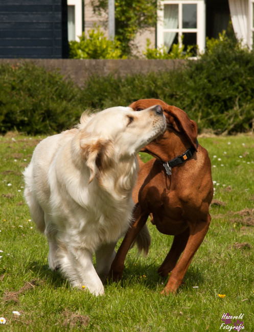Na 5 seconden schudden ze beide, beetje snuffelen, en de rust in weder gekeert.