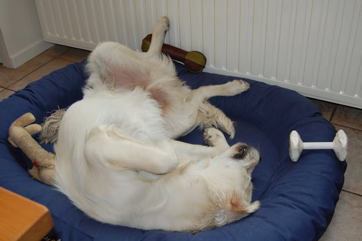 Sjef is ook erg lui...ligt ook graag op zijn rug, ziet er niet uit