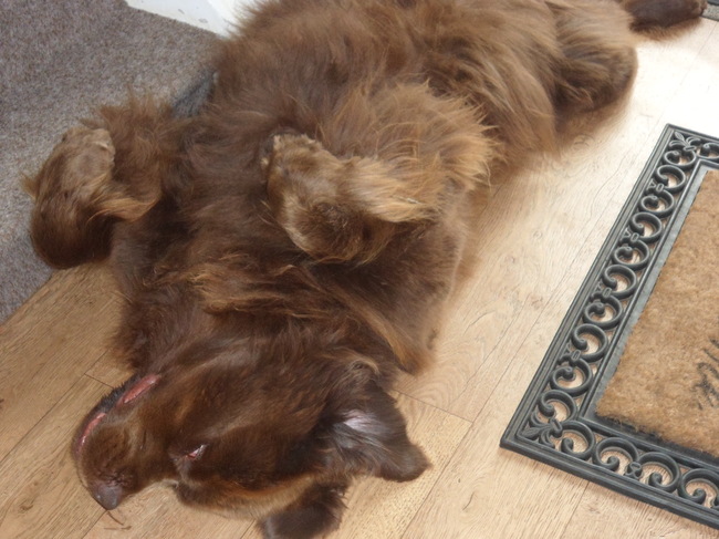 de beharing is zelfs zo dik geworden dat ik al getrimd heeft, want het komt wat kroezelig terug. maar de buik de nek en de zijkanten zijn super mooi weer, behalve de bil van haar ene kant, dat is kroes. daar waar de kale plek is is niet het operatiegebied.