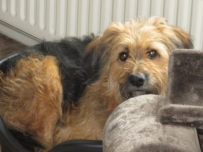 Ik kan hem 10 keer naar zijn eigen mand wijzen,maar hij vind dat Turbo's mand perfect past.