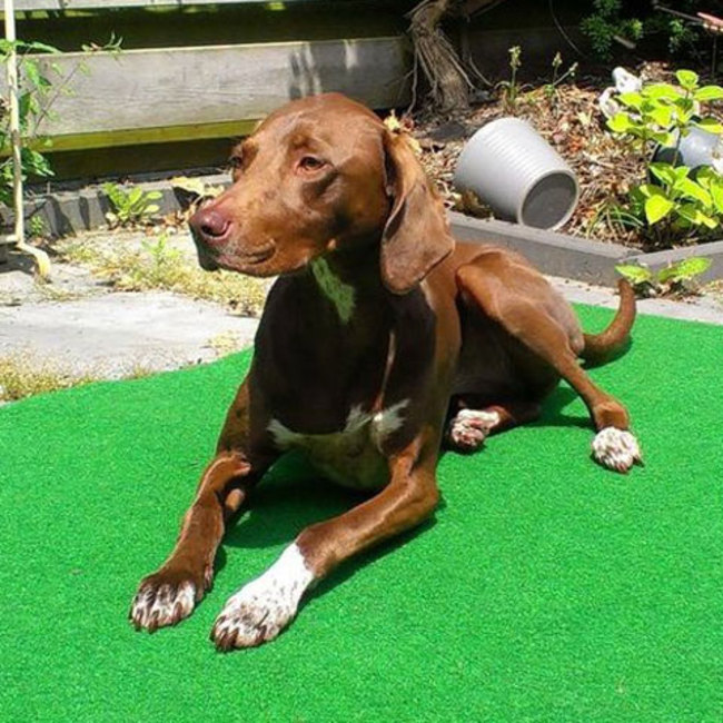Toen ik uit mijn werk kwam gelijk het grasmatje neergelegd. Ze kijkt wel een beetje moeilijk
