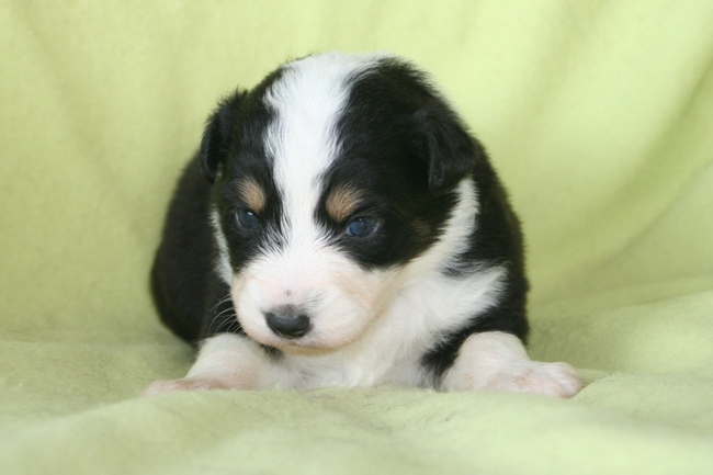 Ik ben dol blij met Cody...hij leert heel gemakkelijk, kent de commando's: "zit, af, los, wacht, blijf, poot, andere poot, kom hier" al heel goed en hij is nog maar 14 weken oud.