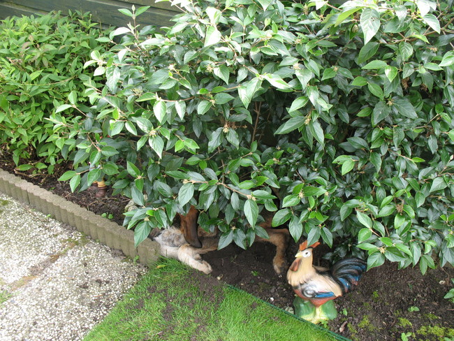 thea ik hoef hem nu niet uit te vergroten ik zie rebel in het midden tussen de boom en de struik klopt he ik zie nog net zijn staartje