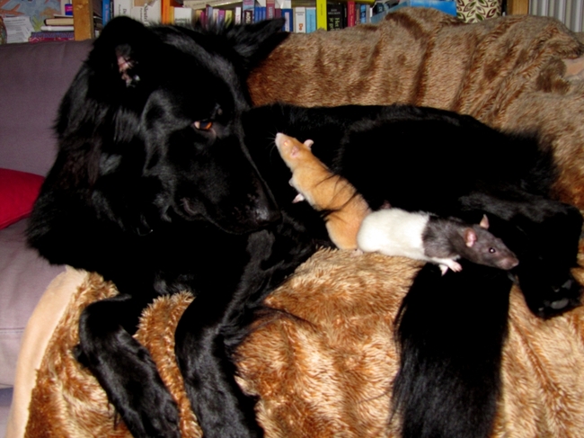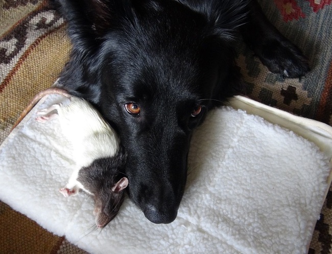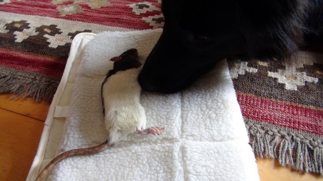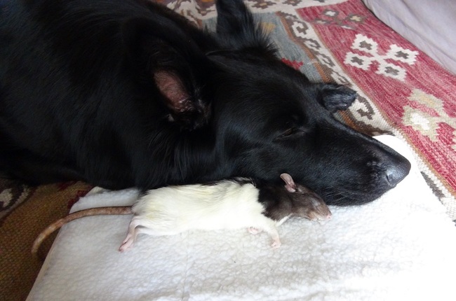 En wel mooi en vertederend dat er tussen hond en ratje zo'n band ontstaan is. En dat Pepper het ratje beschermde.