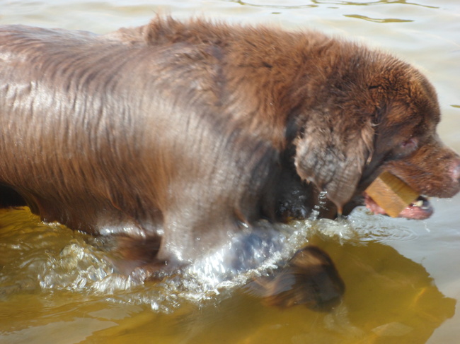 raar maar waar, zoals ze zwemt hoef ik niet bang te zijn, ze zwemt op eigen kracht. en al gooi ik tien x het blokje ver, het enigste wat er aan de hand is dat mijn schouder op een gegeven moment niet meer wilt. hahaha