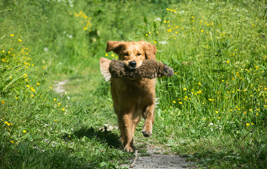 De hand had ik op haar koppie om haar even te knuffelen voordat ze moest apporteren.