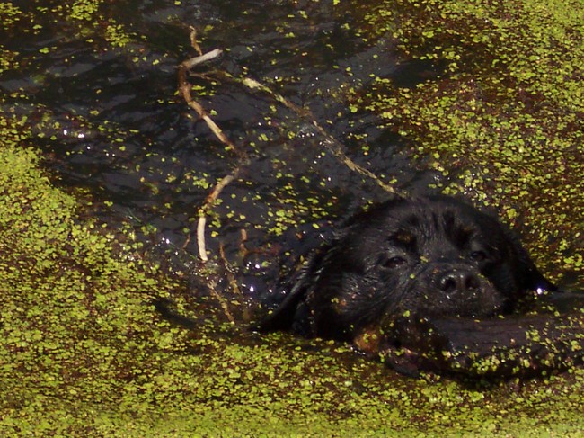 En ook nog één in het water, druk aan het apporteren wat hij geweldig vindt: