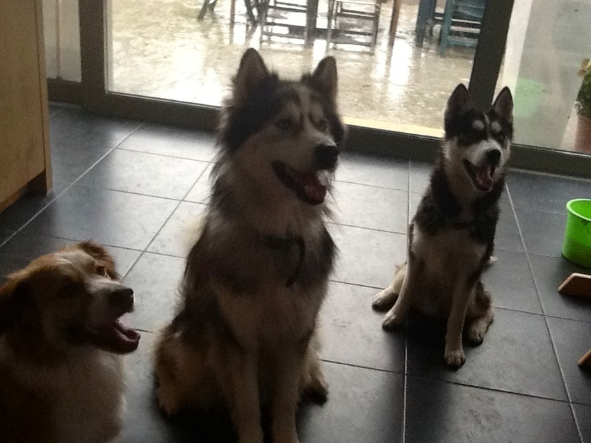 Haha de malamute heeft op de laatste foto ook echt 1 pootje omhoog "zal ik wel/zal ik niet?" Wat een prachtige honden heb je zeg!