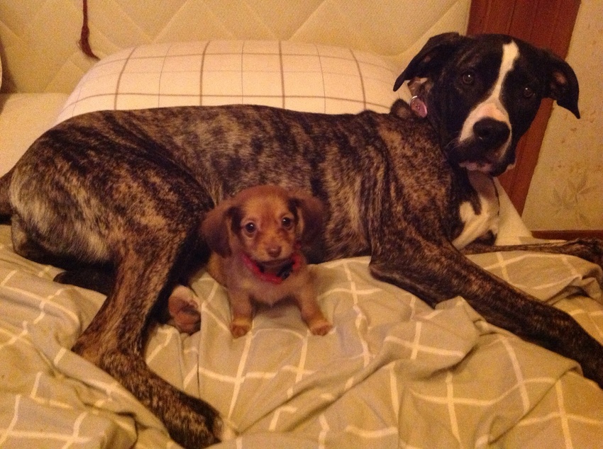 Ik wilde dat mijn pup en oudere hond zo heerlijk rustig samen konden liggen, maar dat draait steeds maar uit op veel te wild spelen... Ben een beetje jaloers, haha!