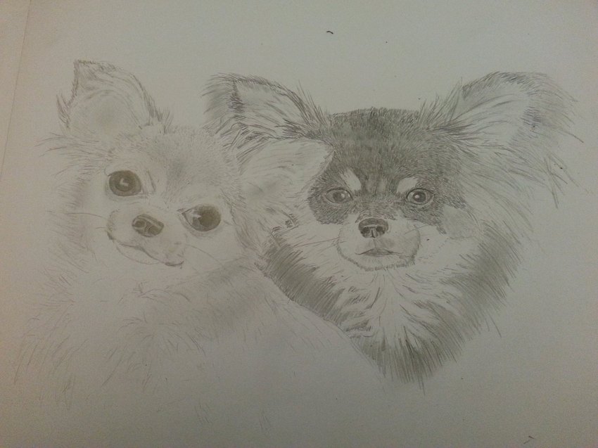 Hier heb ik de twee hondjes van een vriendin van mij getekend.