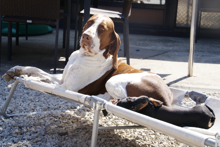 Na een tijdje Marcel op de grond gezet aan de riem, de jack kwam erbij zitten.