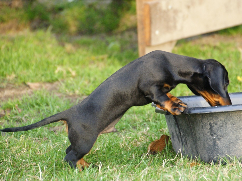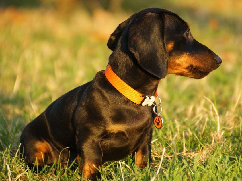 Het halsbandje en een tuigje...dat was pure mishandeling! Dat jeukt, dat is niet fijn, daar moet je constant aan krabben. Teckel aanstellerij kwam boven hahaha