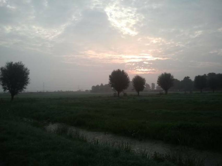 Wel niet van vanochtend (maar vrijdagochtend) en de hondjes staan er niet op, maar ik vond het een heerlijke foto. M'n collega ging trouwen, het was de hele week rotweer geweest (dat vind de gemiddelde Nederlander dan tenminste) en deze dag beloofde zo mooi te worden!