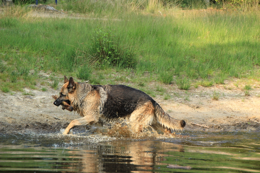 Wel moest ze dan veel rechtlijnig lopen, liefst stap bij het optrainen (zodat de hond echt alle poten heel gericht moet gebruiken en niet kan smokkelen) en zwemmen, dat zwemmen is echt van belang, zij had haar hond geleerd in het water te blijven, ze bracht de takken tot aan de kant, en mijn vriendin zorgde altijd zo "geschoeid" te zijn dat ze de tak/bal/speel kon aanpakken, haar hond bleef dan in het water staan.