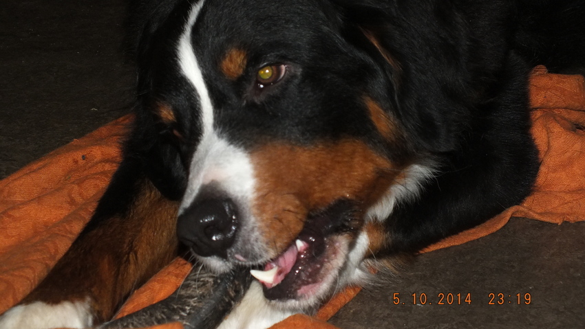 Een botje of wat ook moeten we alleen niet geven als ze er al vanaf de dierenwinkel op gefocust is, en als ze te hard gaat, moeten we na even wel even voor wat anders ruilen en haar even rustig aan laten doen. Ze kan heel beheert kauwen maar als ze om wat voor reden ook gefocust is da gaat het echt hard volle power laat ze er dan op los, en ja dan stijft haar temperatuur dus ook. Maar op zich ben ik al heel blij dat ze van kauwen en knuffels en dergelijke geniet, anders bleef er in de beroerdste tijd van het jaar helemaal niks meer voor d'r over.
