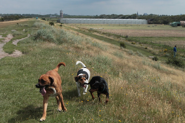 3 doggies ah, hier een foto voor je van de hondendijk. rechts zie je het hek, maar links niet, maar die zit er wel