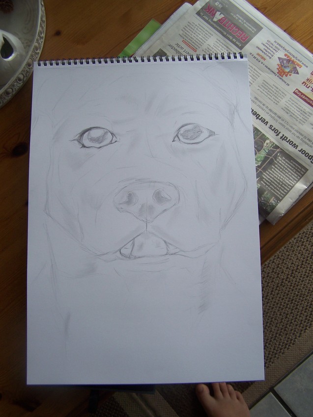 1 tekening word erg eentonig dus ben even vlot begonnen aan een schets er moet nog zeker vele veranderen maar kijken of jullie kunnen raden welke hond en van welke eigenaar deze is ..