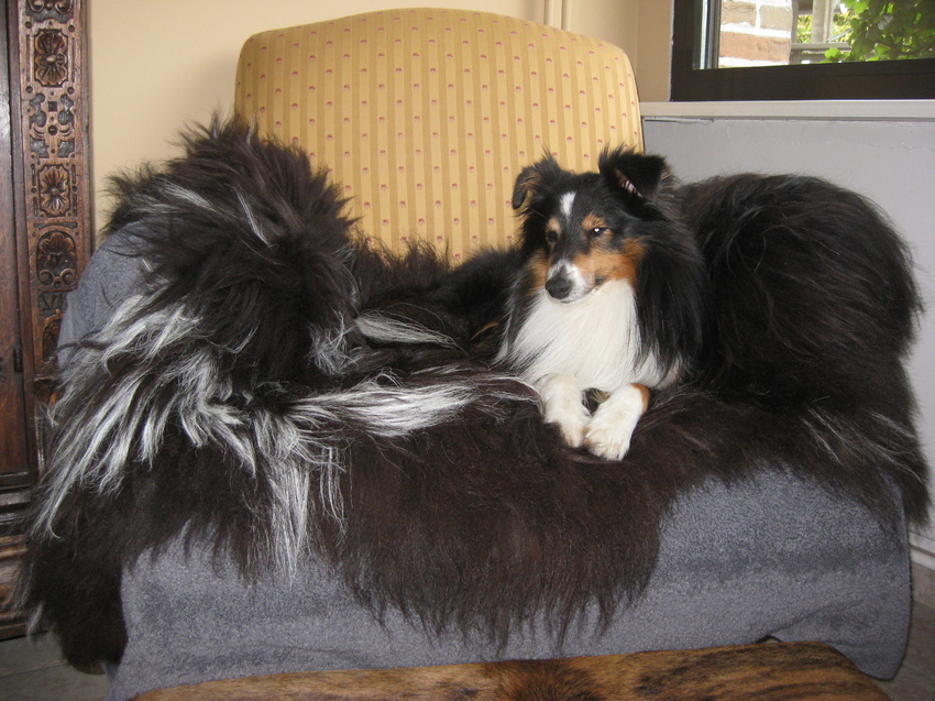 Van onze schapen vachten hebben we ook kleden laten "maken" de honden vinden het heerlijk