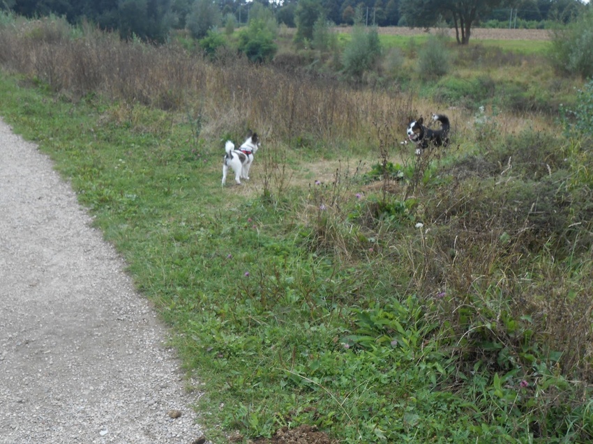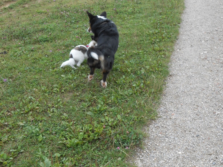 het paard dat we tegen kwamen vond Lola niet zo leuk en begon te grommen en durfde er niet langs haha
