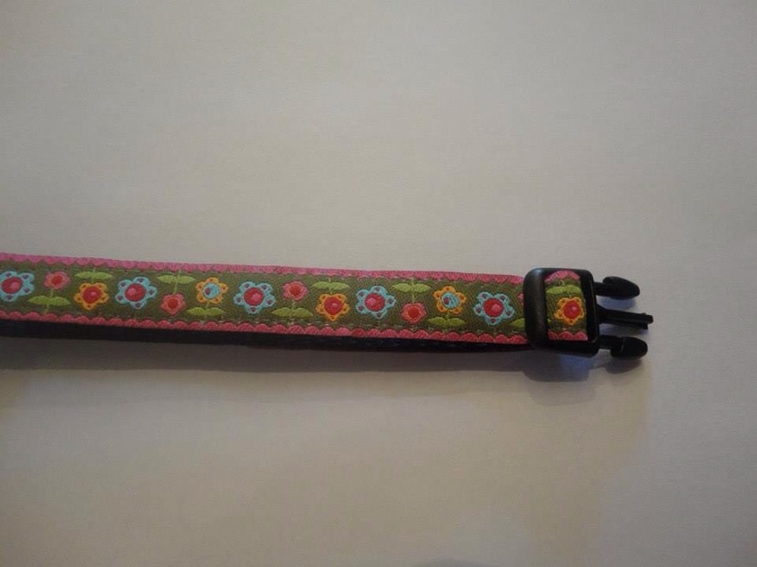 Momenteel draagt ze deze altijd, daar zit haar penning aan. Is een zacht bandje en makkelijker om te doen dan die leren halsband (is met gesp, dit is gewoon klik).