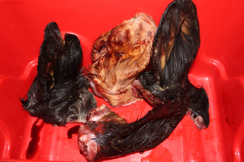 Waar Sam hier lang mee deed tot onze verbazing, waren runderoren, maar dan verse.