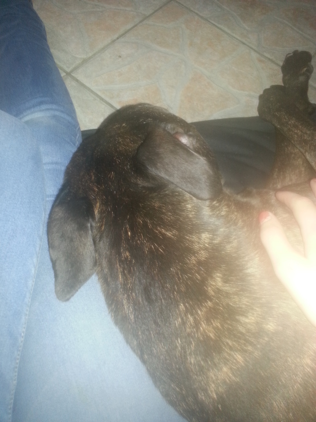 Boy heeft toen hij ongeveer 3 jaar oud was, zijn kniebanden gescheurd gehad. Dus heeft nu in beide achterpoten een pin zitten. Het is een tijdje minder gegaan en ze wilde hem in laten slapen. Blij dat ze het toch niet hebben gedaan, Het gaat namelijk weer steeds beter en begint ook weer wat vrolijker te kijken.