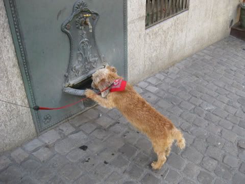 Drinken uit de "Hundenbrunnen" , in Zurich