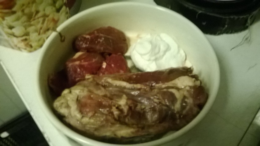 fazantenkarkas, lamavlees, kwark