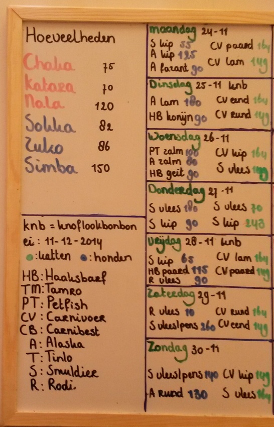 Even weer een foto van wat de honden en katten hier vandaag eten.