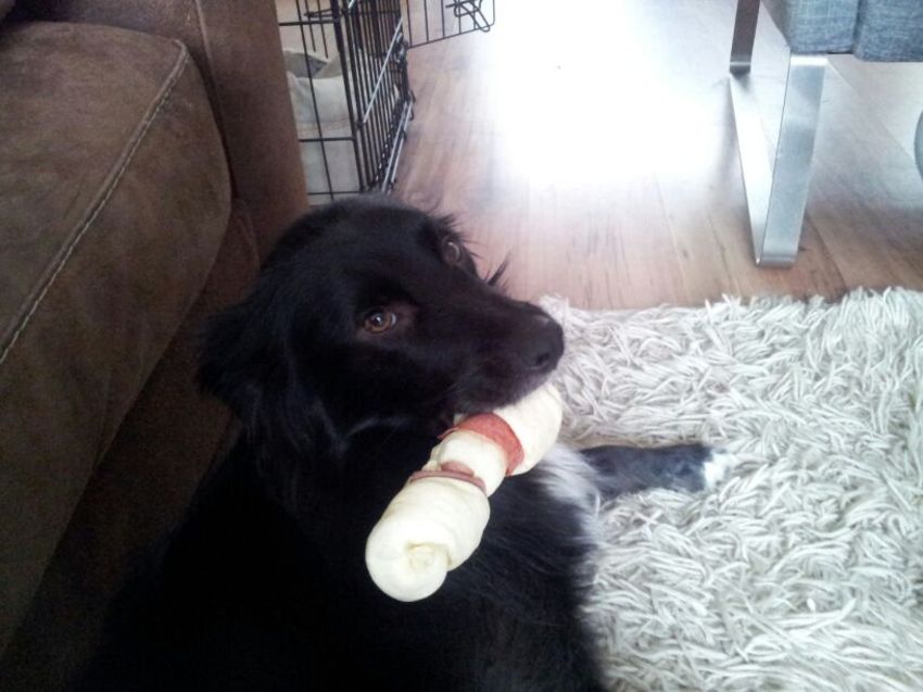 Beetje vroeg nog, maar Saar is vanochtend al verwend met een heerlijke nieuwe kluif