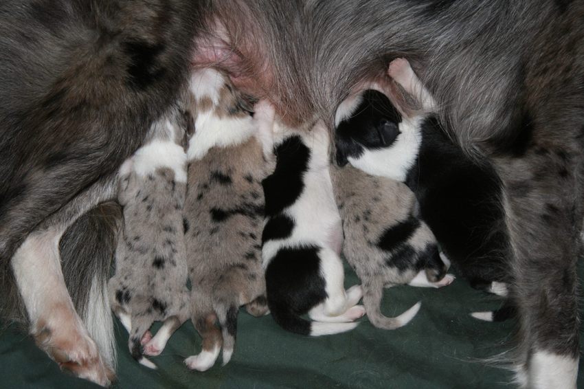 Een beetje hetzelfde als Binti... het is echt blue merle en geen sable. Een hele aparte kleur.
