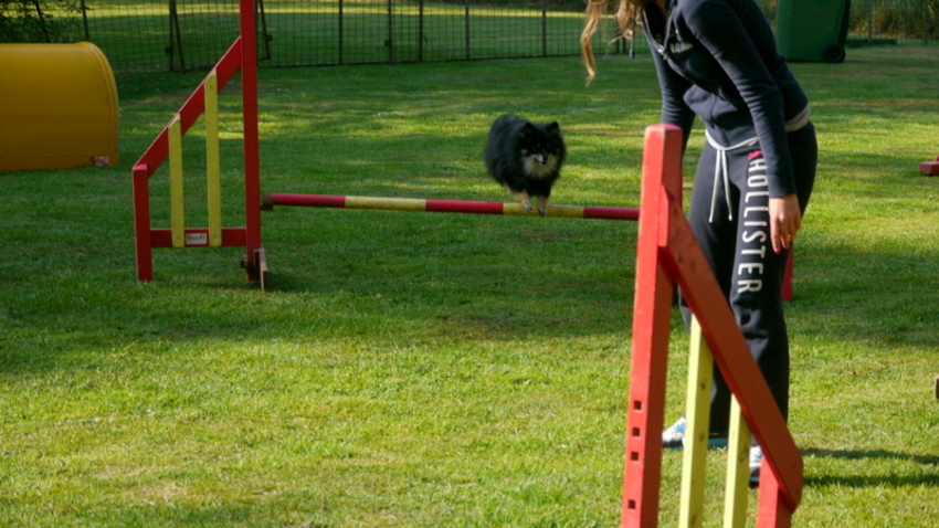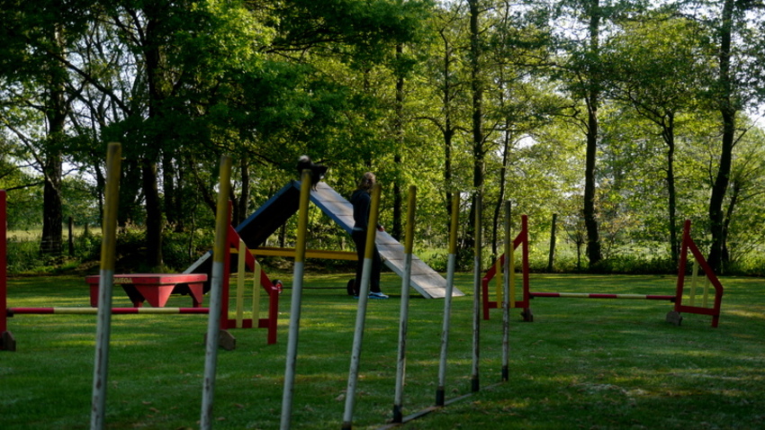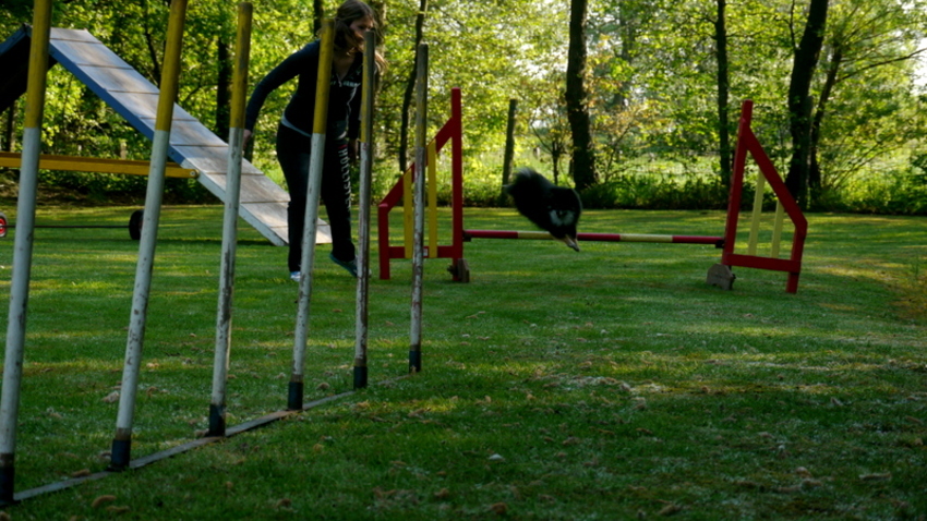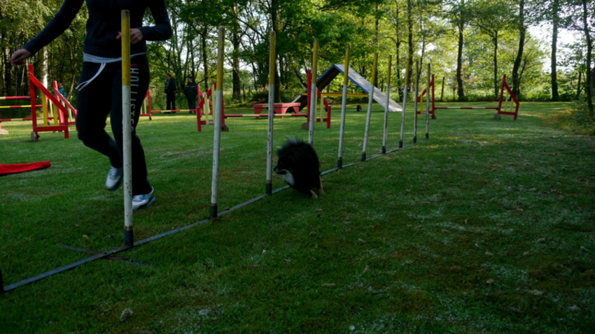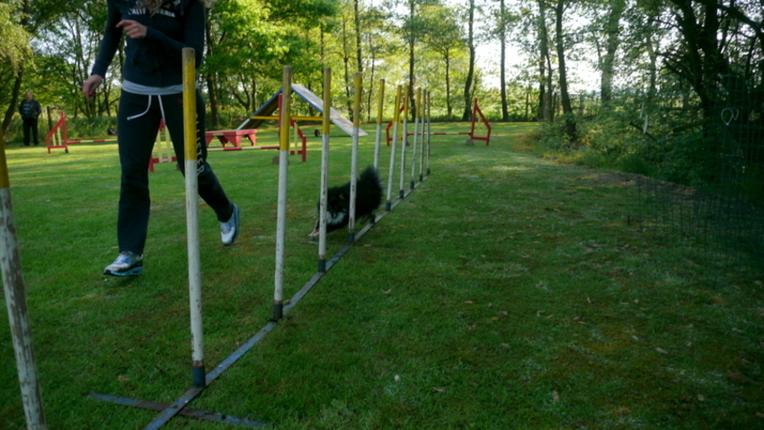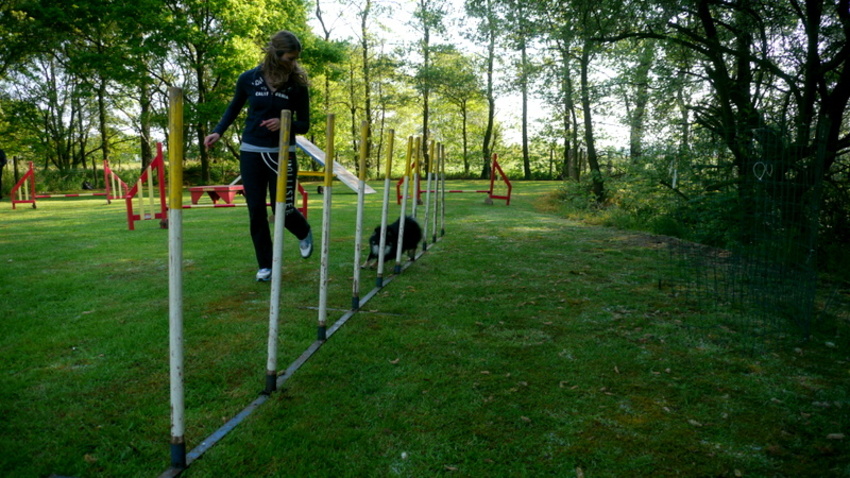 gisteren weer training gehad! het ging super goed! hij gaat volledig zelfsstandig in 1 vlotte beweging naar de palen en hij mist er nooit eentje!