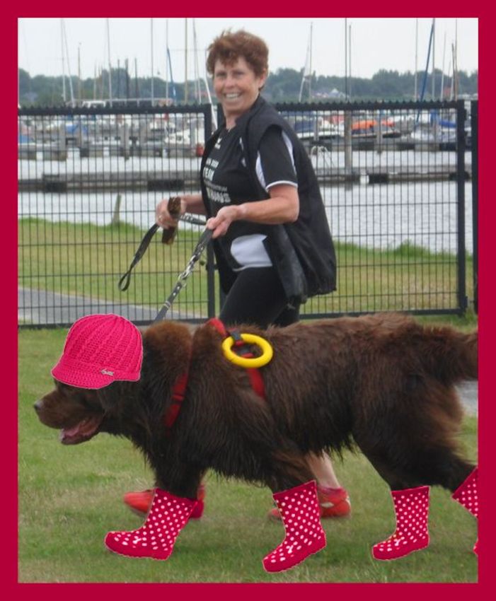 Alleen komt daar iedere keer een Newf met laarsjes voorbij.