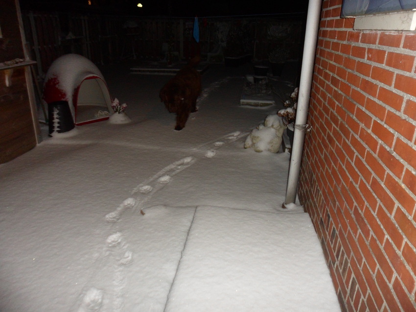 de sneeuw is best veel, de deur ging niet open, en omlopen ging niet, want de schuurdeur en de rendeur waren bevroren. !!!!!