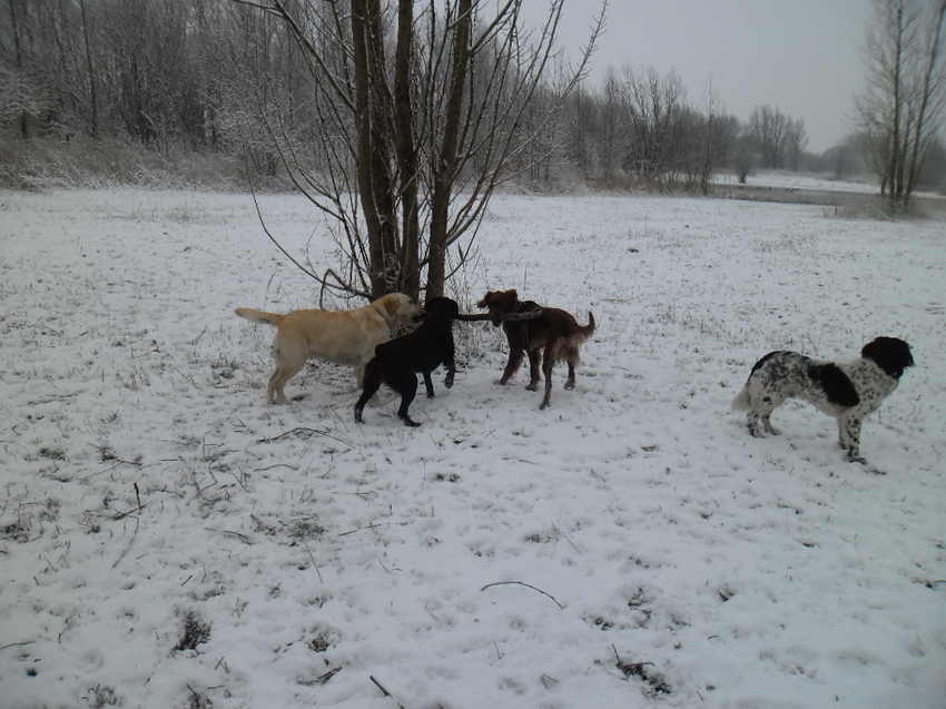 denk dat dat komt, omdat het maar af en toe voorkomt, de eerste sneeuw hier sinds verleden jaar, en ja voor ons mensen is het al leuk, laat staan voor de hondjes.