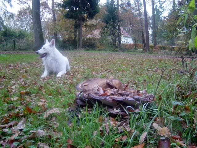 Mexx is trouwens de laatste tijd steeds kleveriger. Hij loopt nooit meer dan 2 a 3 meter van ons af en we werken al jaren met het 'touch-systeem' (zodra hij bij me komt en mijn heup of hand aantikt krijgt hij tijdens het loslopen lekkers en dan stuur ik hem weer weg) en de laatste tijd werkt hij er steeds fanatieker mee.