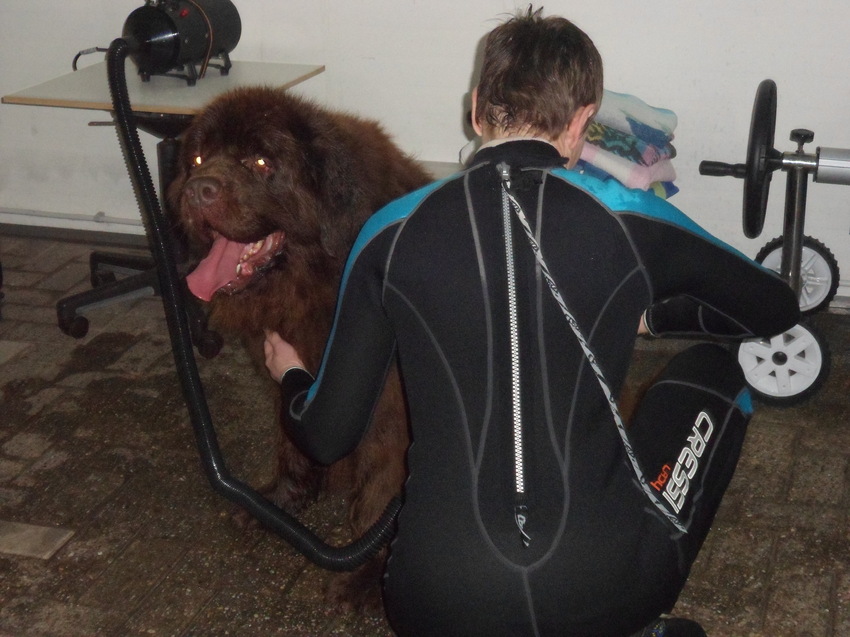 na het zwemmen , wordt Bamse altijd lekker droog geblazen.