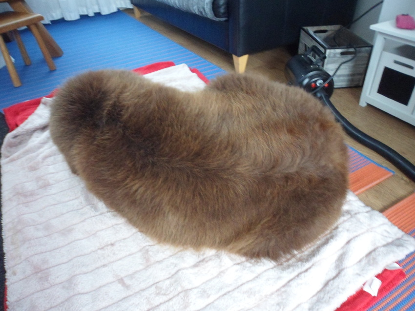 toch nog even thuis met de waterblazer, ze is lekker onder zeil en laat alles maar over zich heen gaan, blazen.