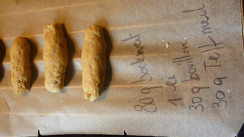 Wifi vond het beslag alvast lekker. meel ei en kippenbouillon, kan niet anders dan lekker zijn