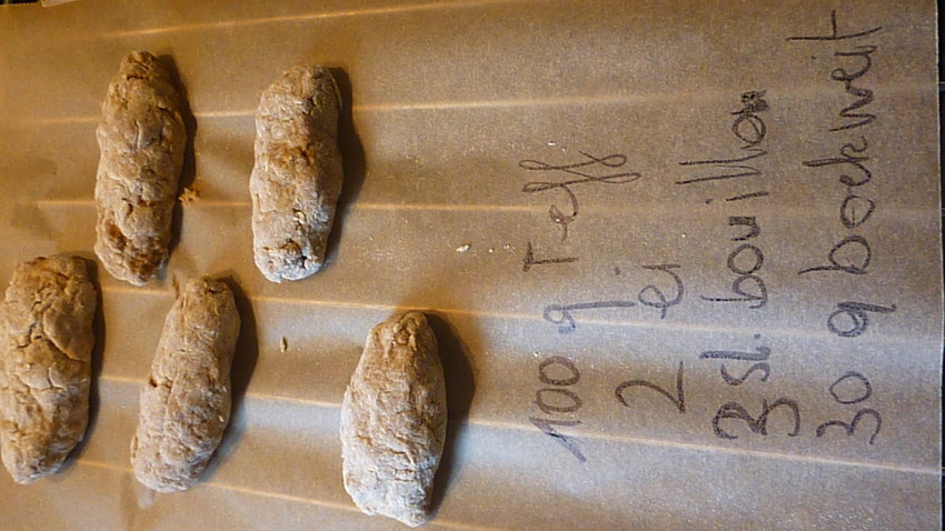 heb intussen quinoa, boekweitmeel en teff-meel (wou niets aan het toeval overlaten dat geen keiharde koeken zijn)
