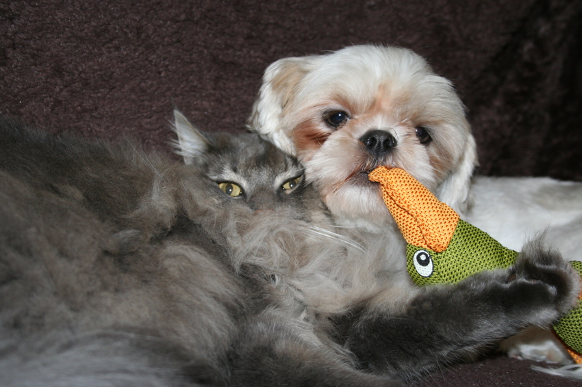 Als ik een foto kon plaatsen toonde ik de relatie Maine Coon (10 Kg) en chow.Toen het een kitten was ging hij zelfs in het eten van de hond zitten die volop schrokte. De chow ging lief opzij en wachtte tot het deugnietje zijn buik vol had.