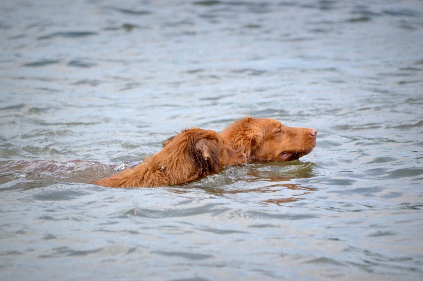 Ze was samen met 1 andere pup de enige van het laatste nest die het meer ingingen. Yuna kwam regelmatig met de bal het water uit terwijl er zo'n 20 volwassen tollers achteraan gingen.