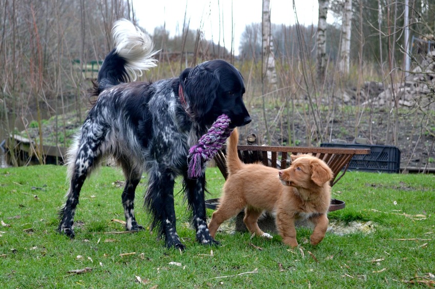 Dan kan ik ook weer lekker veel met Fenna doen, zoekspelletjes etc. En Yuna heeft het ook prima daar met twee andere tollers.