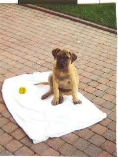 nu ik eens zo zit te denken, eigenlijk best wel schandalig. maar ik heb helemaal geen pupy fotos van bounty. moet ik maar even bij baasje vragen of hij ze heeft. maar buster nu een jaar ken ik sind hij voor het eerst werd uitgelaten. heb 5 uur op heb lopen wachten op het veld (wist niet hoelaat de pup en baas uit duitsland terug waren) maar daar heb ik deze fotos van.