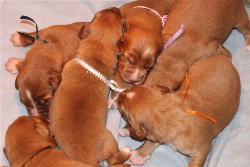 Nu gaan ze ook wat horen en daarom komt er vanaf nu wat geluidspeelgoed bij de pups te liggen.